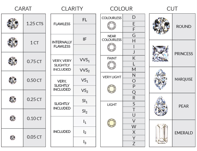 I diamanti bianchi vengono valutati secondo uno standard internazionale preciso e da società specializzate, veri e propri enti che rilasciano certificazioni universalmente riconosciute. Le gemme migliori sono valutate sulla base di numerose caratteristiche, principalmente “Le quattro C”:
